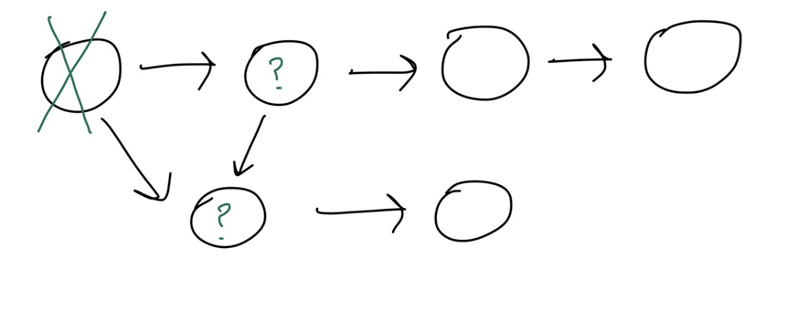 맨 오른쪽 위부터 가면 가능하지만, 맨 왼쪽에서부터 시작하는 경우 어디로 전진할지 모르기 때문에 알 수 없다
